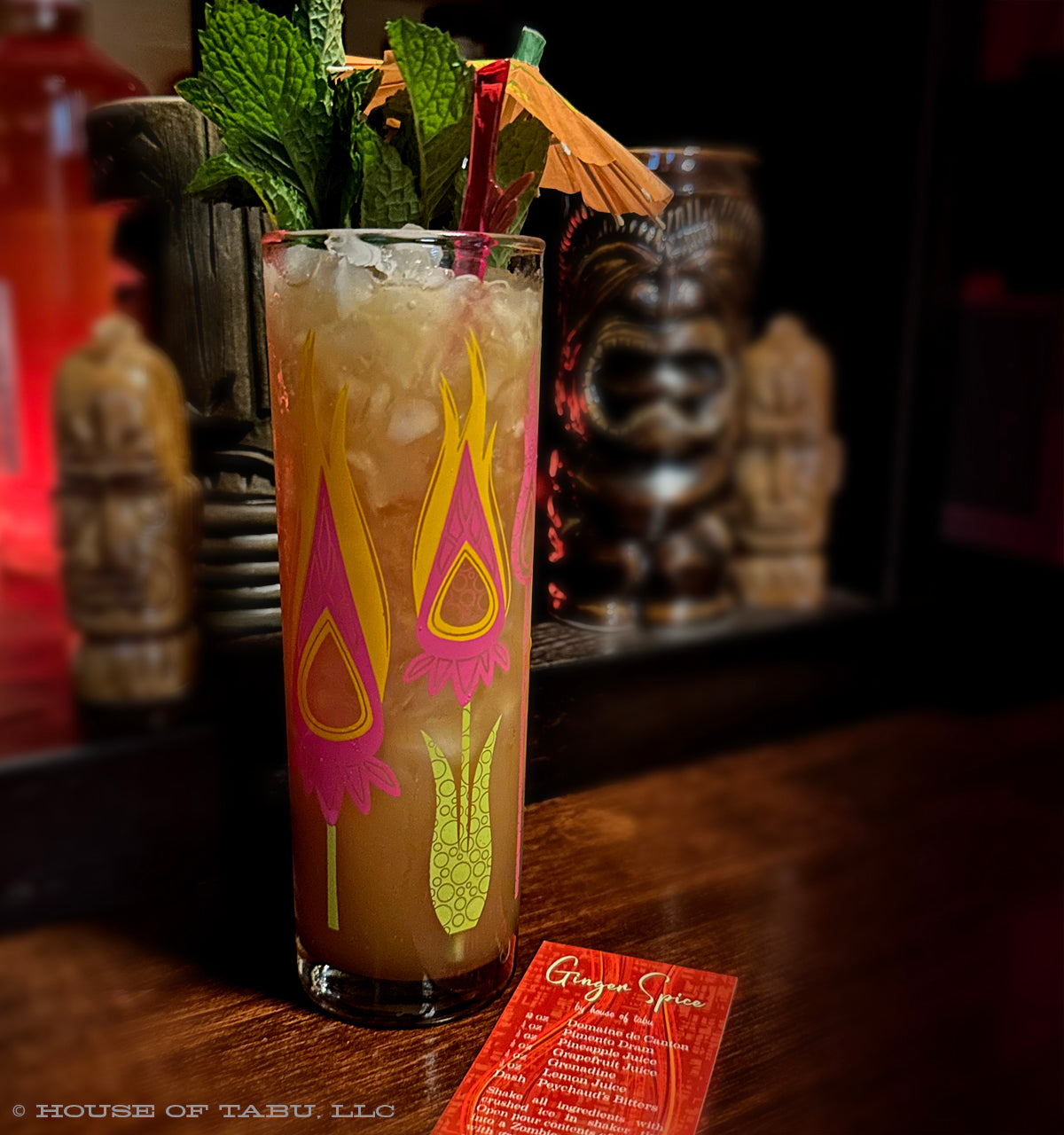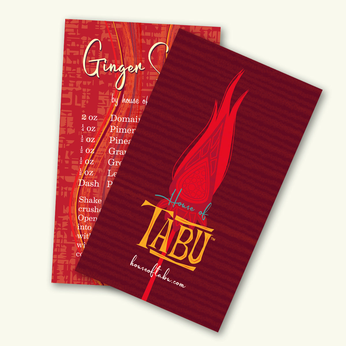 Inspired by the stunning torch ginger plants we admired on our Maui trip, these stylized Zombie glasses blend Mid-Century Modern design with vibrant silk-screened colors. This edition showcases a trio of magenta, orange, and lime green hues, holding 13.5 ounces of your favorite tropical cocktail. Each glass includes an original House of Tabu cocktail recipe, a bamboo-style swizzle stick, and a cocktail umbrella, inviting you to savor a Hawaiian escape with every sip—until it’s time to refill.