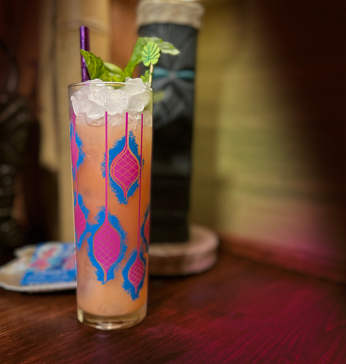 We’ve decided to release a new color variant of our long out-of-production Glass Floats Zombie glass. This new release features a mid-century twist on the classic Japanese glass floats in a striking blue and purple imprint. This version is perfect for a Zombie, of course, or any other classic cocktail concoction!